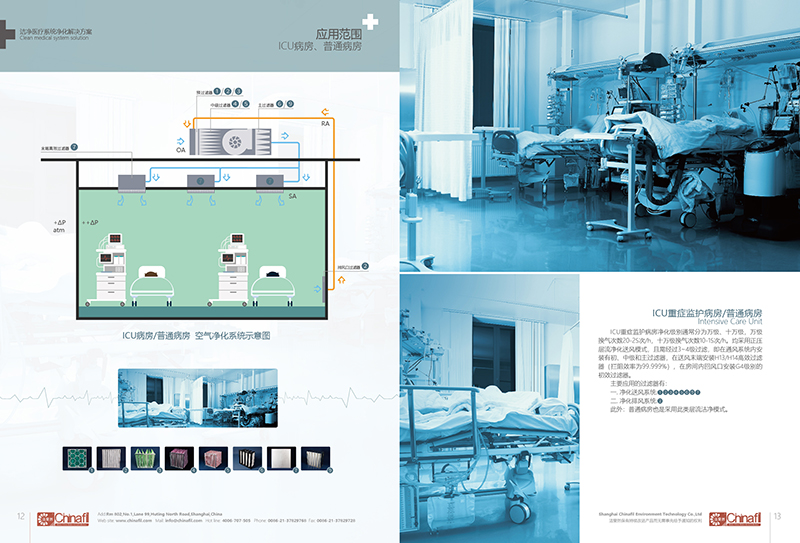 ICU病房采用乐玩CFOF有隔板高效过滤器,选用低阻型精细玻璃纤维滤纸,折褶滤纸之间选用瓦楞型铝箔为分隔板,相比此前的纸隔板,具有更耐湿、不发霉、可承受更大风量的优点。
