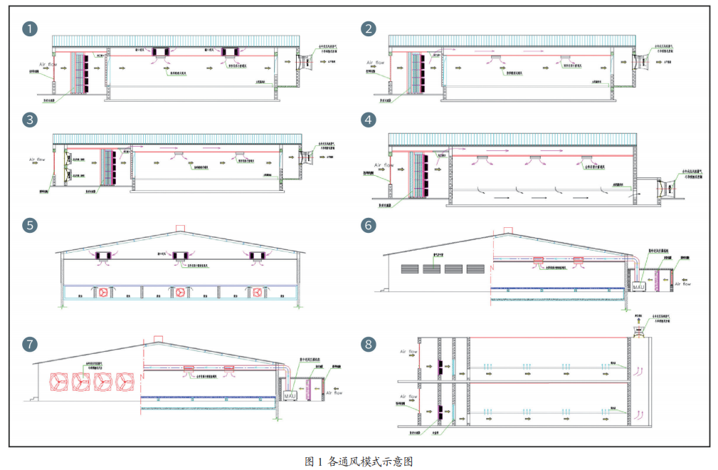 通过对近年来全国南北各处养殖场的实地调研情况显示,因为各地气候条件的不同、饲养经验的不同、建筑结构特点的不同,所以通风量的需求也就各不一样,从而诞生了各具特点的通风模式: