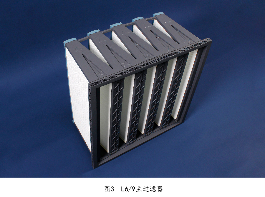 挡沙网过滤墙设置于空气过滤主墙前端,外框采用不锈钢制成,多层网格,具备挡沙、防尘、挡鸟、防蚊功能。当表面积累大量灰尘杂物时,可取下后用高压风/水枪反向冲洗。防疫主过滤墙是病原拦截的主件,初效过滤器为主过滤器提供保护作用,可延长高效过滤器的使用寿命。G4初效预过滤器和L6/9主过滤器分别如图2和图3所示。