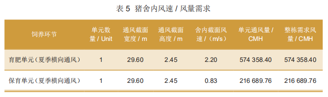 第一,明确猪舍内风速/风量需求,如表5所示。