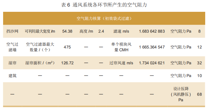 第二,在能满足风量需求的前提下,通风系统各环节所产生的空气阻力,如表6所示。