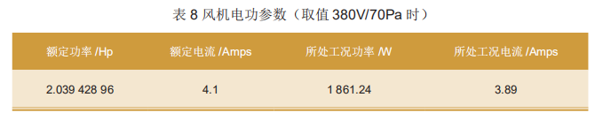 第四,根据风机马达所处工况的电气参数,评估是否有超载的可能,如表8所示。