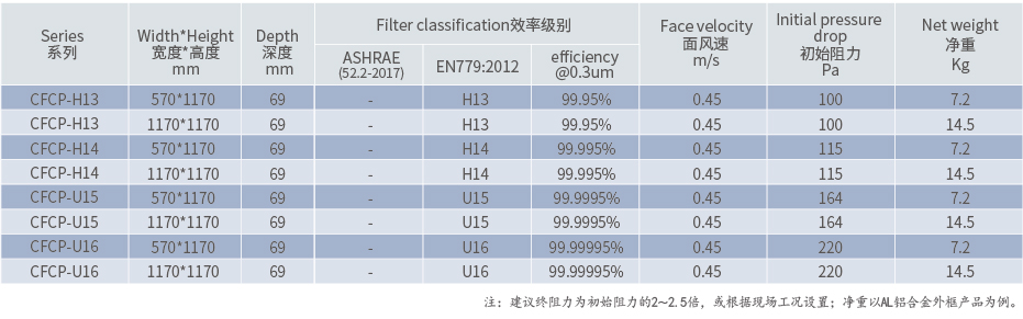 超细玻璃纤维滤纸,95褶/英尺,比常规产品增加20%的面积,带来更低的阻力和更长的寿命;