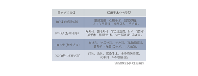 乐玩洁净医疗系统空气净化解决方案包括手术室层流净化、手术室空气过滤、ICU病房空气净化、传染病房空气净化、传染病房排气过滤、无菌病房空气净化、静脉配置中心空气净化等等,涵盖新建和改造升级。净化的基本方式是:室外空气通过气流通道时进行初中高效多级过滤,使空气品质达到GB50333-2013规定的洁净等级,以满足手术、康复治疗的需要。